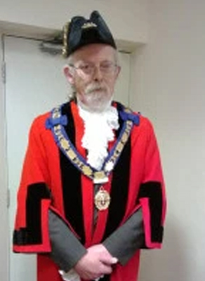 Cllr. Douglas Hull accepting his pin for his triple tenure and most frequently serving Mayor between 1989-91, 2003-05 and 2015-16.